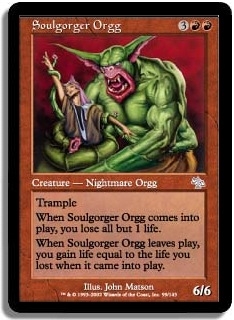 Trample. When ~this~ comes into play, you lose all but one life. When ~this~ leaves play, you gain life equal to the life loss when ~this~ came into play.