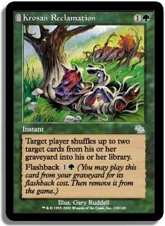 Target player shuffles up to two target cards from his or her graveyard into his or her library.