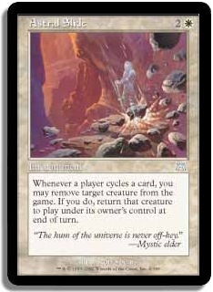 Whenever a player cycles a card, you may remove target creature from the game. If you do, return that creature to play under its owner?s control at end of turn.