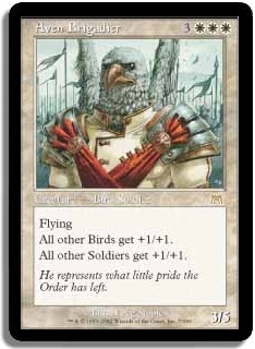 All other Birds get +1/+1. All other Soldiers get +1/+1.