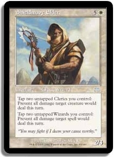 Tap two untapped Clerics you control: Prevent all damage target creature would deal this turn.