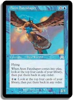 When Aven Fateshaper comes into play, look at the top four cards of your library, then put them back in any order.