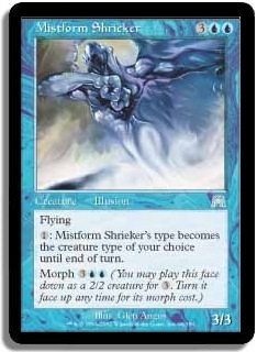 1: Mistform Shrieker's type becomes the creature type of your choice until end of turn.