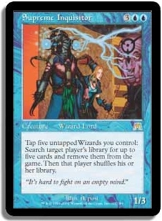 Tap five untapped Wizards you control: Search target player's library for up to five cards and remove them from the game. Then that player shuffles his or her library.