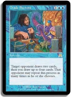 Target opponent draws two cards, then you draw up to four cards. That opponent may repeat this process as many times as he or she chooses.