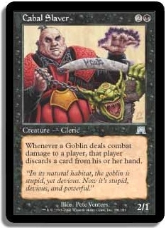 Whenever a Goblin deals combat damage to a player, that player discards a card from his or her hand.