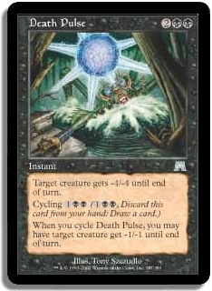 When you cycle Death Pulse, you may have target creature get -1/-1 until end of turn.