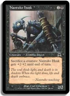Sacrifice a creature: Nantuko Husk gets +2/+2 until end of turn.