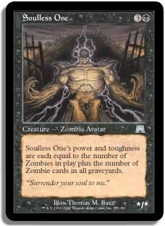 Soulless One's power and toughness are each equal to the number of Zombies in play plus the number of Zombie cards in all graveyards.