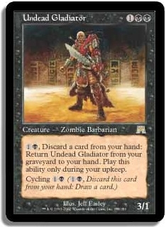 1B, Discard a card from your hand: Return Undead Gladiator from your graveyard to your hand. Play this ability only during your upkeep.