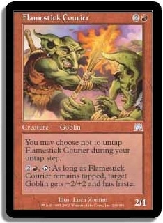 2R, T: As long as Flamestick Courier remains tapped, target Goblin gets