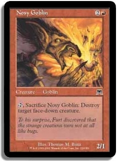 T, Sacrifice Nosy Goblin: Destroy target face-down creature.