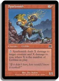T: Sparksmith deals X damage to target creature and X damage to you, where X