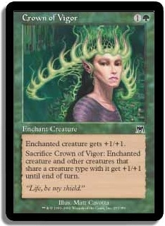 Sacrifice Crown of Vigor: Enchanted creature and other creatures that share a creature type with it get +1/+1 until end of turn.