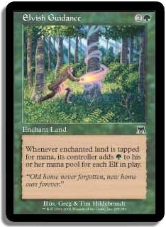 Whenever enchanted land is tapped for mana, its controller adds G to his or her mana pool for each Elf in play.