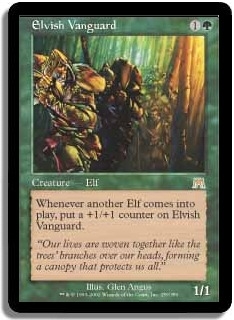 Whenever another Elf comes into play, put a +1/+1 counter on Elvish Vanguard.