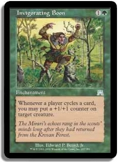Whenever a player cycles a card, you may put a +1/+1 counter on target creature.