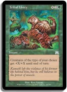 Creatures of the type of your choice get +X/+X until end of turn.
