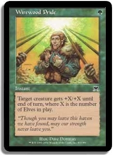 Target creature gets +X/+X until end of turn, where X is the number of Elves in play.