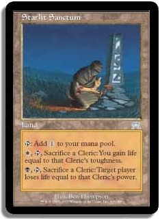 B, T, Sacrifice a Cleric: Target player loses life equal to that Cleric's power.