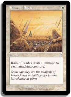 Rain of Blades deals 1 damage to each attacking creature.