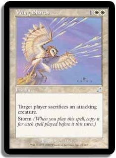 Target player sacrifices an attacking creature. Storm (When you play this spell, copy it for each spell played before it this turn.)