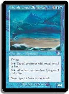 Flying 3U: Tap all creatures with toughness 2 or less. 3U: All other creatures lose flying until end of turn.