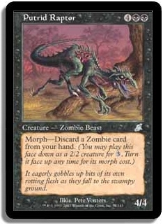 Morph-Discard a Zombie card from your hand. (You may play this face down as a 2/2 creature for 3. Turn it face up any time for its morph cost.)
