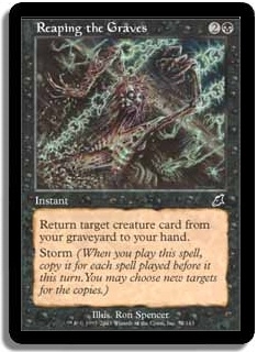 Return target creature card from your graveyard to your hand. Storm (When you play this spell, copy it for each spell played before it this turn. You may choose new targets for the copies.)