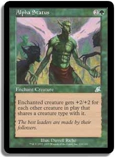 Enchanted creature gets +2/+2 for each other creature in play that shares a creature type with it.