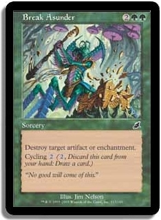 Destroy target artifact or enchantment. Cycling 2 (2, Discard this card from your hand: Draw a card.)
