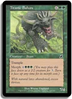 Trample Morph 4GGG (You may play this face down as a 2/2 creature for 3. Turn it face up any time for its morph cost.)