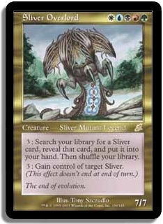 3: Search your library for a Sliver card, reveal that card, and put it into your hand. Then shuffle your library. 3: Gain control of target Sliver. (This effect doesn't end at end of turn.)
