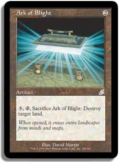 3, Tap, Sacrifice Ark of Blight: Destroy target land.