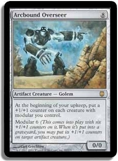 At the beginning of your upkeep, put a +1/+1 counter on each creature with modular you control. Modular 6 (This comes into play with six +1/+1 counters on it. When it's put into a graveyard, you may put its +1/+1 counters on target artifact creature.)