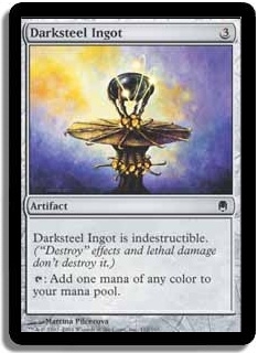 Darksteel Ingot is indestructible. ("Destroy" effects and lethal damage don't destroy it.) T: Add one mana of any color to your mana pool.
