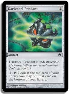 Darksteel Pendant is indestructible. ("Destroy" effects and lethal damage don't destroy it.) 1, T: Look at the top card of your library. You may put that card on the bottom of your library.