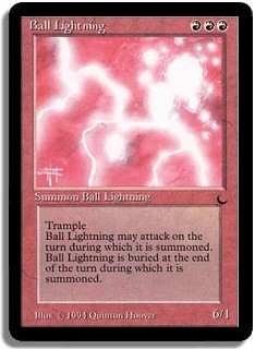 Trample. Ball Lightning can attack the turn it comes into play. At the end of any turn, bury Ball Lightning.