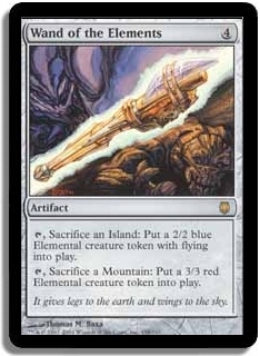 T, Sacrifice an Island: Put a 2/2 blue Elemental creature token with flying into play. T, Sacrifice a Mountain: Put a 3/3 red Elemental creature token into play.