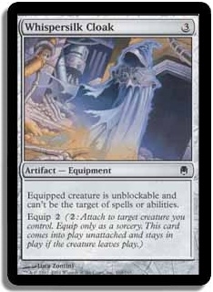 Equipped creature is unblockable and can't be the target of spells or abilities. Equip 2 (2: Attach to target creature you control. Equip only as a sorcery. This card comes into play unattached and stays in play if the creature leaves play.)