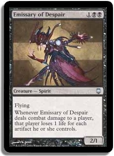 Flying Whenever Emissary of Despair deals combat damage to a player, that player loses 1 life for each artifact he or she controls.