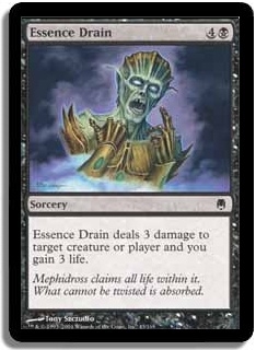 Essence Drain deals 3 damage to target creature or player and you gain 3 life.