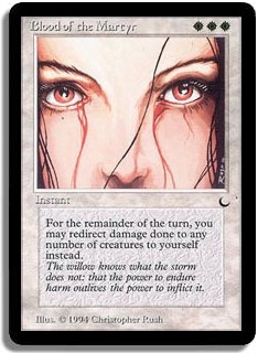 For the remainder of the turn, you may redirect damage done to any number of creatures to yourself instead.