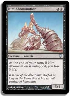 At the end of your turn, if Nim Abomination is untapped, you lose 3 life.