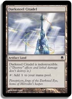 Darksteel Citadel is indestructible. ("Destroy" effects and lethal damage don't destroy it.) T: Add 1 to your mana pool.
