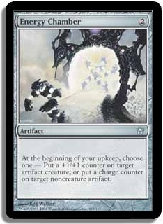 At the beginning of your upkeep, choose one - Put a +1/+1 counter on target artifact creature; or put a charge counter on target noncreature artifact.
