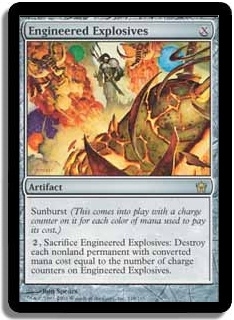 [2], Sacrifice Engineered Explosives: Destroy each nonland permanent with converted mana cost equal to the number of charge counters on Engineered Explosives.
