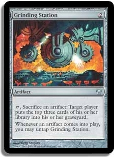 Whenever an artifact comes into play, you may untap Grinding Station.