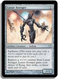 Remove a +1/+1 counter from Lunar Avenger: Lunar Avenger gains your choice