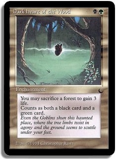 You may sacrifice a forest to gain 3 life. Counts as both a black card and a green card.